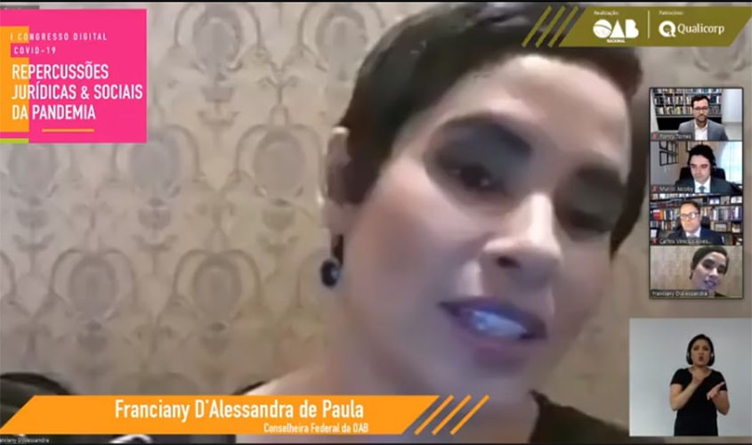 A conselheira federal Franciany de Paula, agradeceu a diretoria da OAB e ESA Nacional pela oportunidade e pontuou que, “com a descoberta do novo coronavírus, uma série de consequências jurídicas passaram a exigir reflexões
