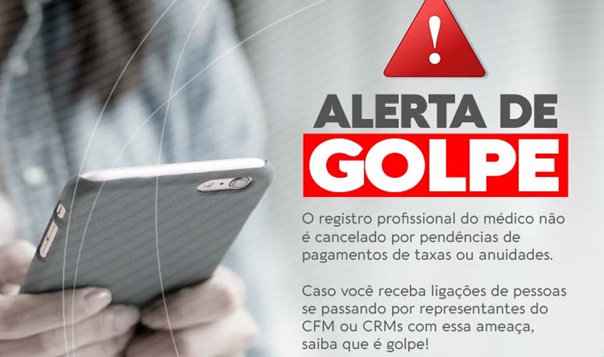 Há mais uma modalidade de golpe sendo praticada: estão entrando em contato com os médicos, seja em seus telefones pessoais ou nos consultórios, para avisar que há alguma pendência de pagamento no Conselho Federal de Medicina (CFM) ou no Conselho Regional de Medicina (CRM).
