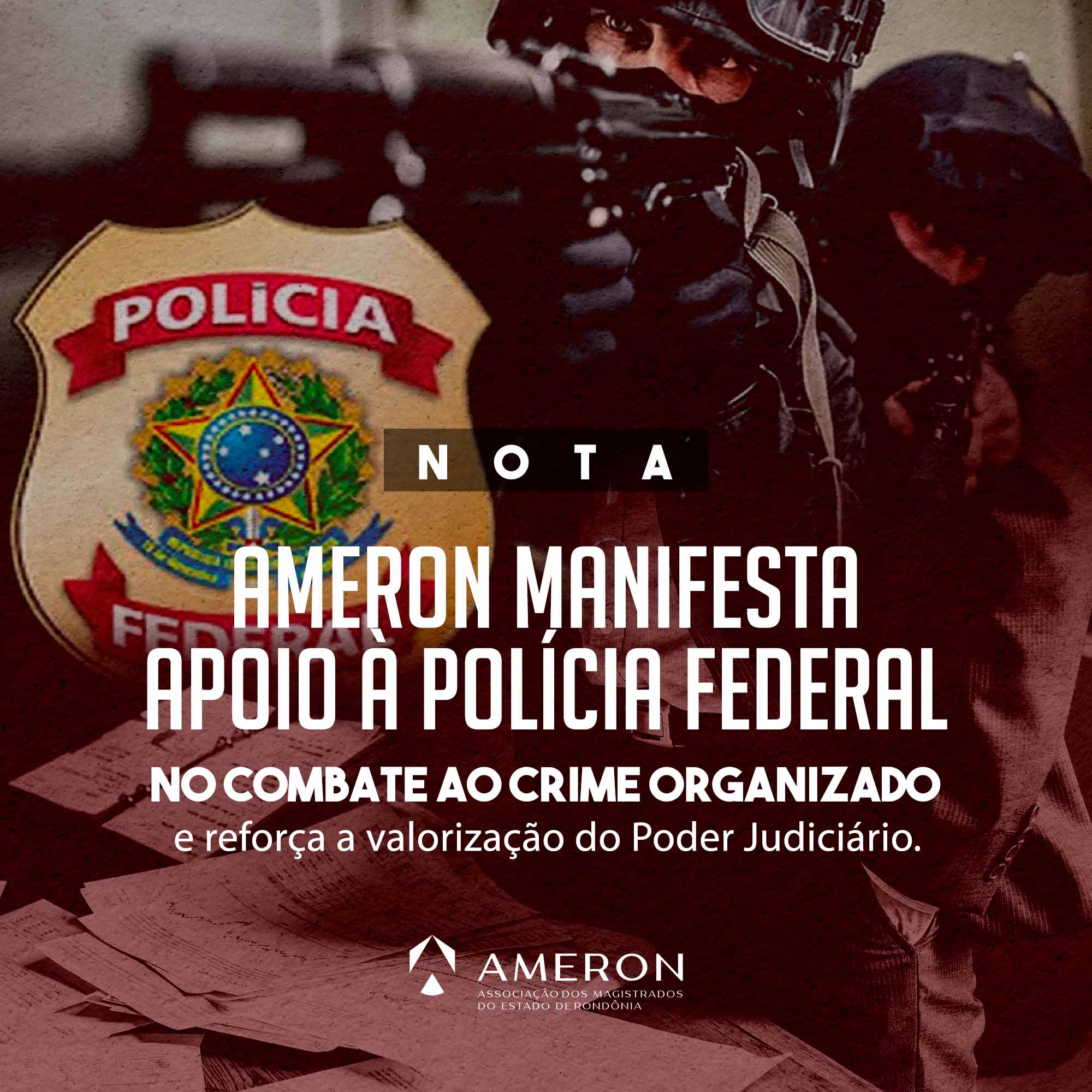 A Associação dos Magistrados do Estado de Rondônia (Ameron) demonstra o apoio da entidade às operações da Polícia Federal que têm como objetivo combater tentativas de intimidações a magistrados, membros do Ministério Público brasileiro e servidores públicos por organizações criminosas.
