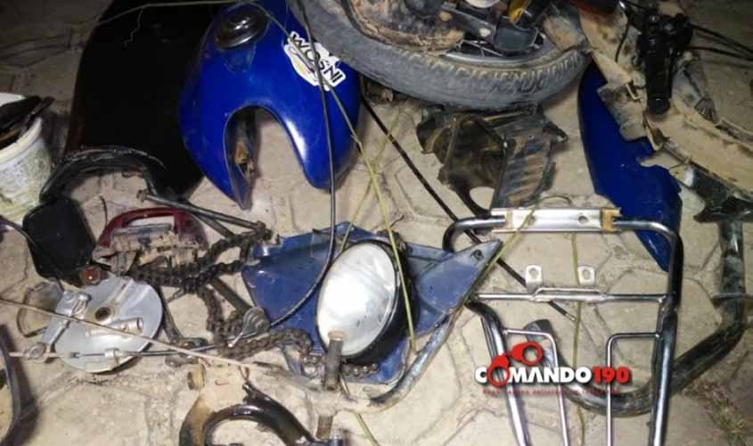 Após denúncia anônima, PM recupera motocicleta furtada que já estava desmontado e apreende armas de fogo