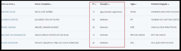 Os registros de Miguel Câmara (PSB) e Paulinho da Argamazon (Republicanos) tiveram seus registros deferidos no final de semana, enquanto que Rosani Donadon (PSC) e Eduardo Japonês (PV) foram divulgados no início da tarde desta quarta-feira, 7.