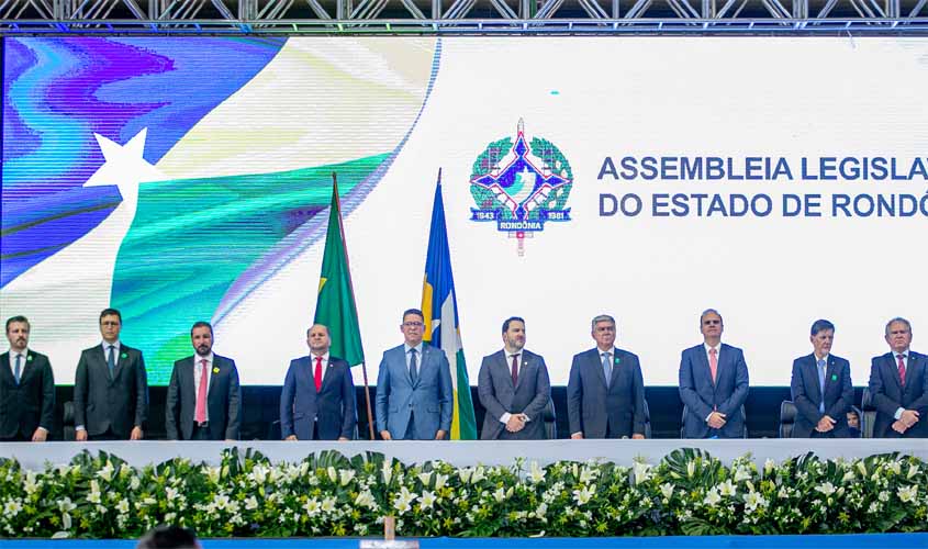 A Assembleia Legislativa do Estado de Rondônia realizou nesta quarta-feira (1º) a sessão solene de posse dos 24deputados eleitos no pleito de 2022 para a 11ª Legislatura. A solenidade ocorreu na Casa de Eventos Talismã 21, em Porto Velho, para onde a sede do Poder Legislativo foi transferida, através do projeto de resolução 510.