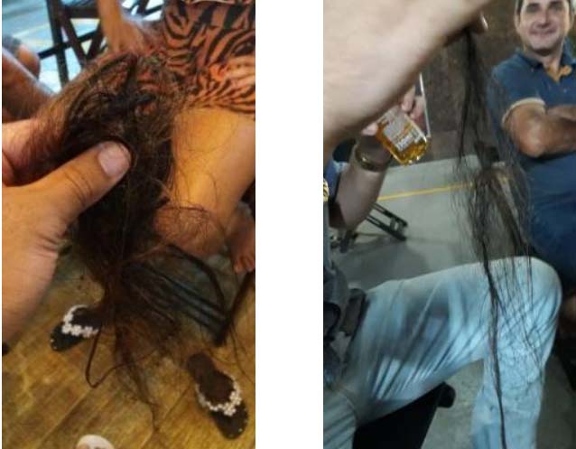 Os puxões de cabelos entre as envolvidas na briga foram tão violentos que uma delas até perdeu parte da “juba”. Imagens do cabelo extraído a força também foram parar no WhatsApp. VEJA NAS IMAGENS SECUNDÁRIAS.