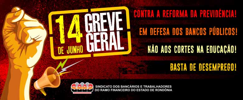 Os bancários de Rondônia decidiram, por unanimidade, em assembléia geral realizada na tarde de ontem,segunda-feira 10/6, na sede do SEEB-RO, em Porto Velho, em aderir à Greve Geral de 14 de junho. Na data, os trabalhadores realizarão um ato unificado (com trabalhadores de outras categorias) na Praça das Caixas D’água, Centro, com concentração a partir das 8 horas.