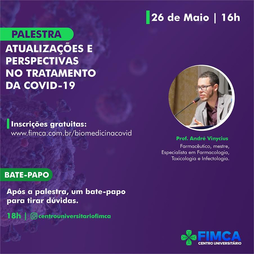 Inscrições gratuitas: www.fimca.com.br/biomedicinacovid