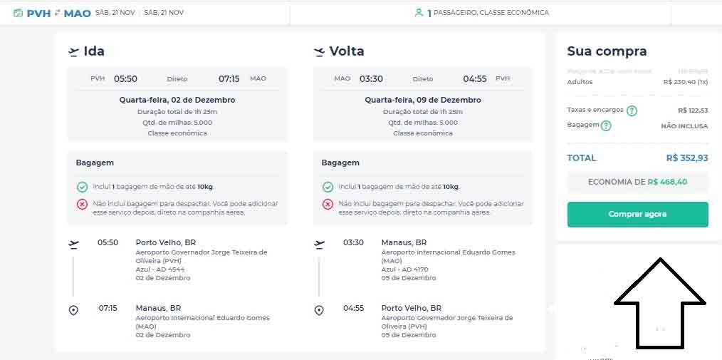 Passagens ida e volta com taxas incluídas para viagem em NOVEMBRO saindo de PORTO VELHO