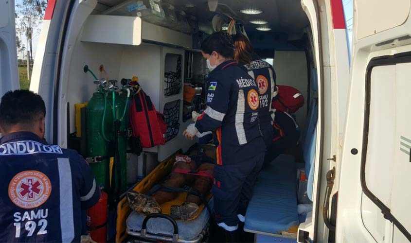 Porto Velho, RO - Pedro Araujo de Queiroz, 44 anos, foi socorrido em estado grave para o Hospital João Paulo II por uma equipe do Samu após ter sido esfaqueado várias vezes por um homem identificado como Elissandro de Oliveira Mendonça, 29 anos, com quem vivia há mais de dois anos.