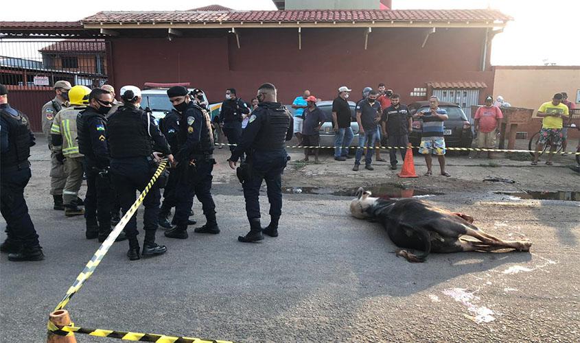 Na Rua Uruguai, próximo da avenida Alexandre Guimarães, já no bairro Nova Porto Velho, os policiais foram obrigados a abater o animal a tiros a fim de evitar que matasse alguém.