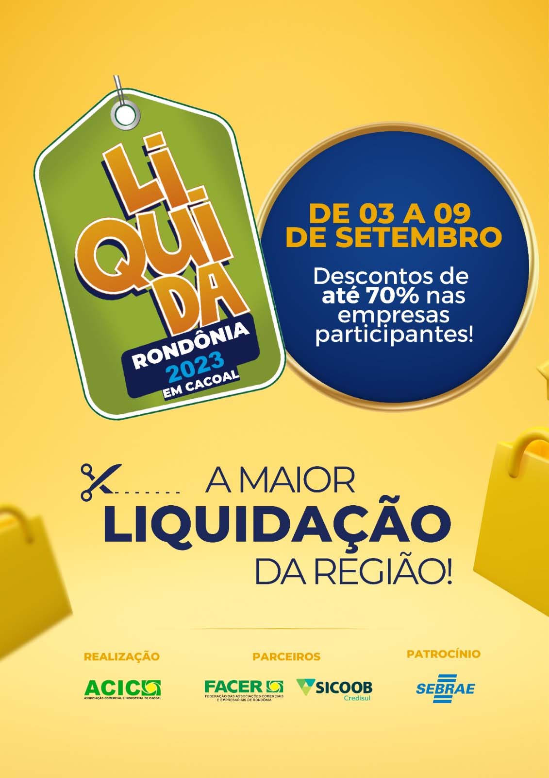 Com o apoio da Federação das Associações Comerciais e Empresariais de Rondônia (Facer), Sicoob e do Sebrae, a Associação Comercial e Empresarial de Cacoal (ACIC) realiza em setembro mais uma edição do Liquida Rondônia em Cacoal e, a cada momento, a ACIC tem atualizado a lista de participantes.