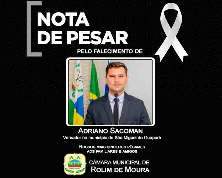 É com imenso pesar que a Câmara Municipal de Vereadores, manifesta suas condolências a todos familiares e amigos pelo falecimento do vereador Adriano Sacoman (PSB), do município de São Miguel do Guaporé, ocorrido na manhã desta quarta-feira (29). “Dedé”, como era conhecido tinha apenas 36 anos, recebeu uma descarga elétrica na localidade de Santana do Guaporé, onde residia.