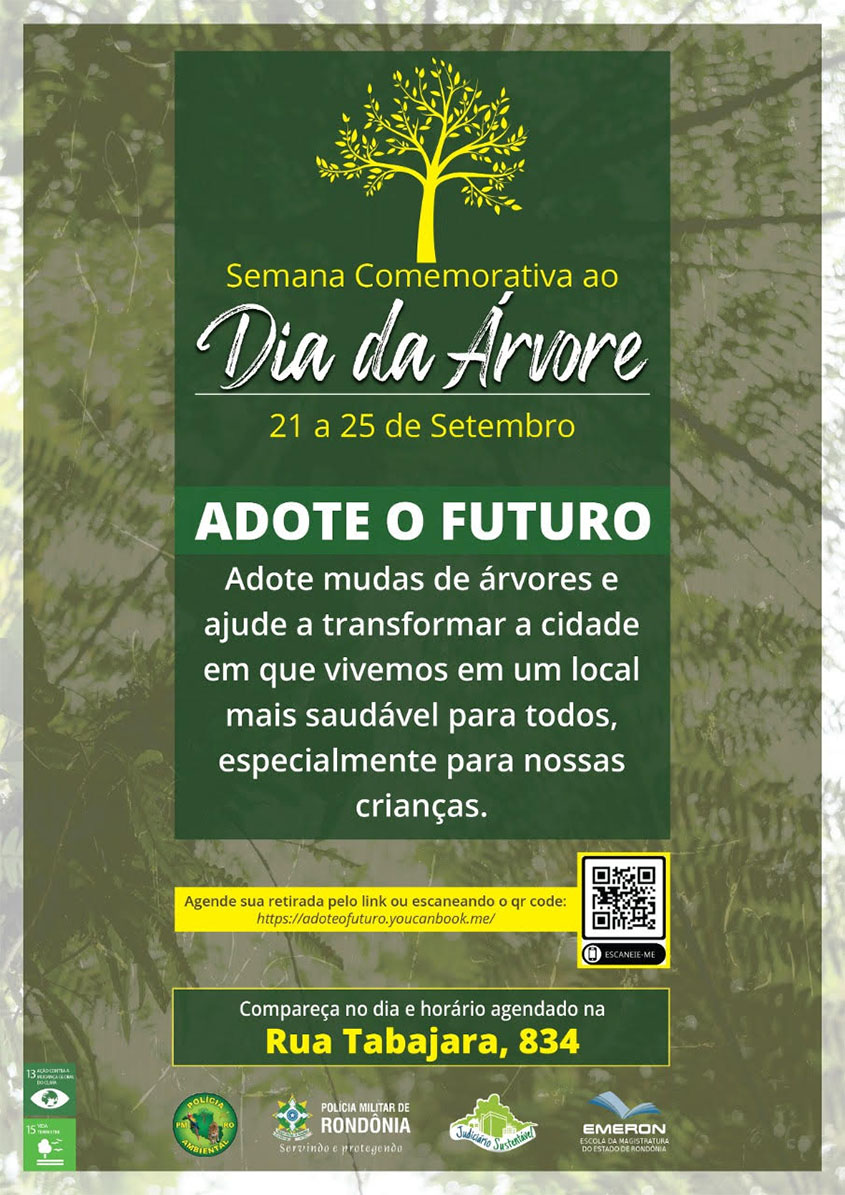 A Escola da Magistratura do Estado de Rondônia (Emeron) e a Polícia Militar de Rondônia (PMRO), por meio do Batalhão de Polícia Ambiental (BPA), realizam, na próxima semana, a campanha Adote o futuro. A ação, promovida como atividade de extensão da Pós-Graduação Lato Sensu em Direito Ambiental, visa a adoção de árvores para o confronto ao desmatamento na Amazônia.