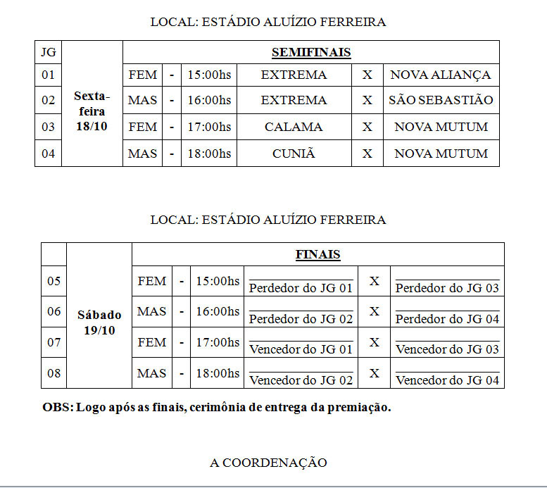 Tanto na etapa de abertura, em Jaci-Paraná quanto na segunda fase, que aconteceu na vila São Sebastião, os jogos foram bastante disputados. Ao término das duas etapas, se classificaram para as semifinais no futebol masculino, as equipes de Extrema, São Sebastião, Cuniã e Nova Mutum. No feminino, Extrema, Nova Aliança, Calama e Nova Mutum estarão na disputa.
