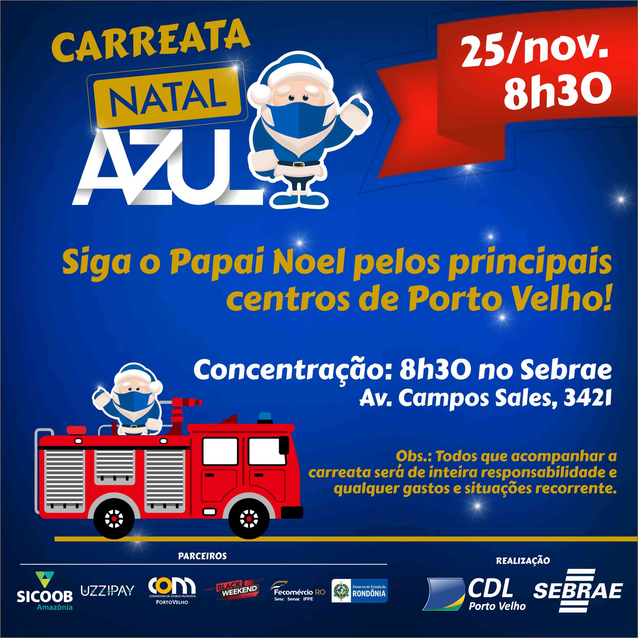 O Natal Azul é uma campanha de promoção de vendas para turbinar as vendas de fim de ano e dar à população, oportunidades incríveis para garantir os presentes de Natal para toda a família. Nesta quarta (25), o Papai Noel Azul estará percorrendo as principais avenidas de Porto Velho.