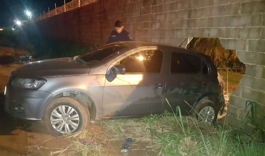 Carro colide em muro de condomínio na BR-364 e ocupante é detida com pistola
