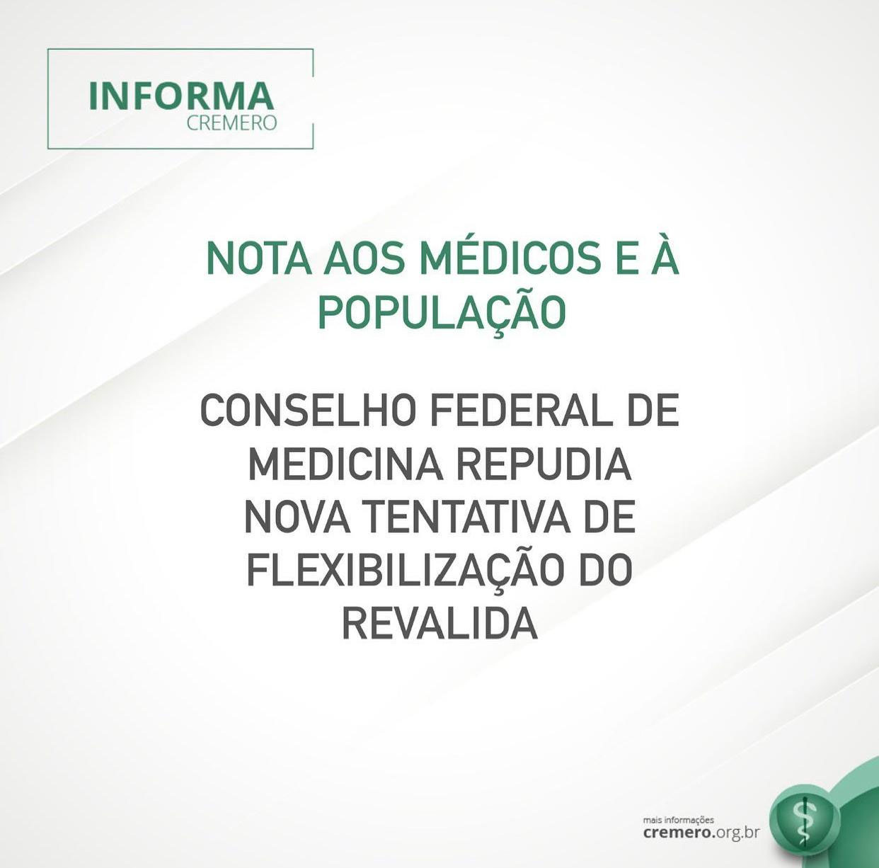 O Conselho Federal de Medicina (CFM) repudia nova tentativa de flexibilizar o Exame Nacional de Revalidação de Diplomas Médicos (Revalida) por meio da aprovação, no Senado, do Projeto de Lei nº 3.716/20. Esse texto, que ainda deve ser votado na Câmara dos Deputados, simplifica negativamente o processo sob pretexto de caráter emergencial ligado à Covid-19.