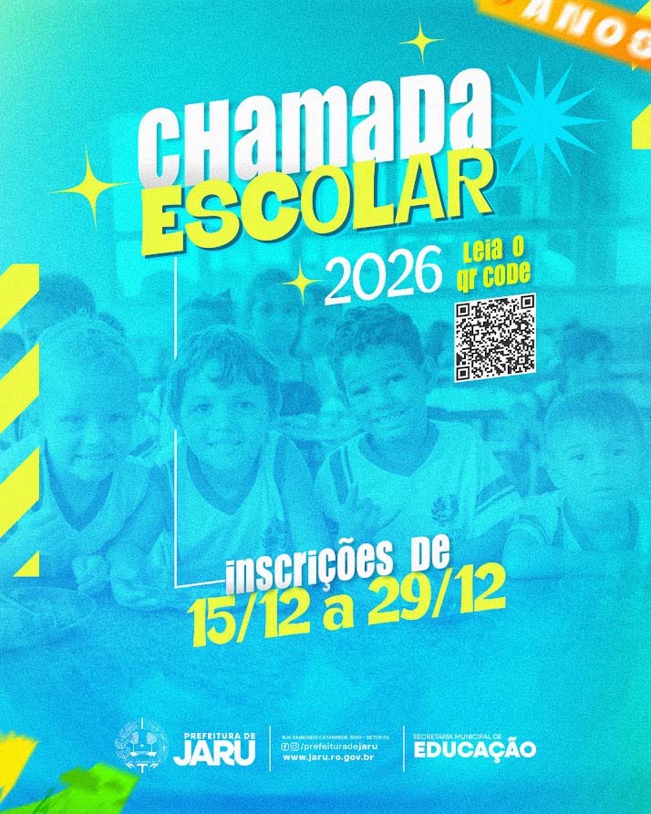 A Prefeitura de Jaru comunica que tem início nesta segunda-feira (15) a Chamada Escolar, que funciona como uma pré-matrícula digital para alunos da pré-escola e ensino fundamental I e II da rede municipal de ensino.
