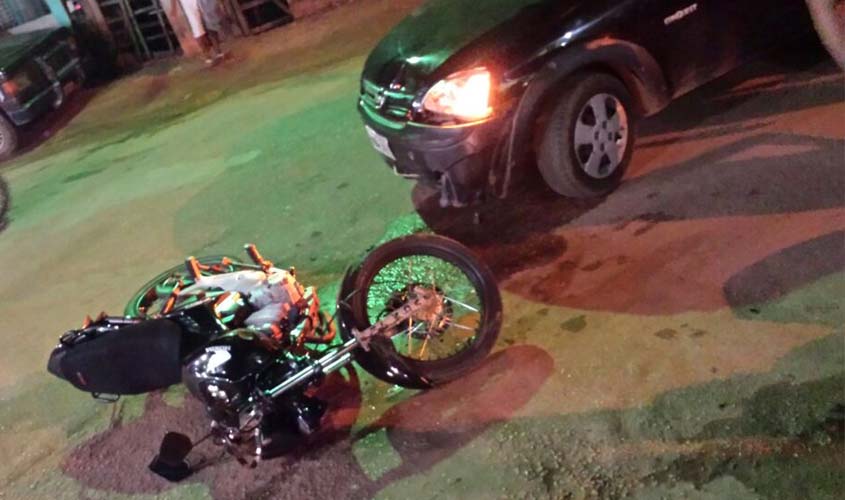Colisão entre carro e moto deixa casal lesionado no bairro Nacional