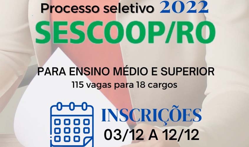 Processo seletivo com 115 vagas é aberto pelo Sistema OCB/RO