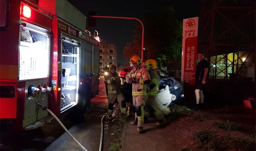 Carro pega fogo em movimento e equipe do Samu ajuda a apagar