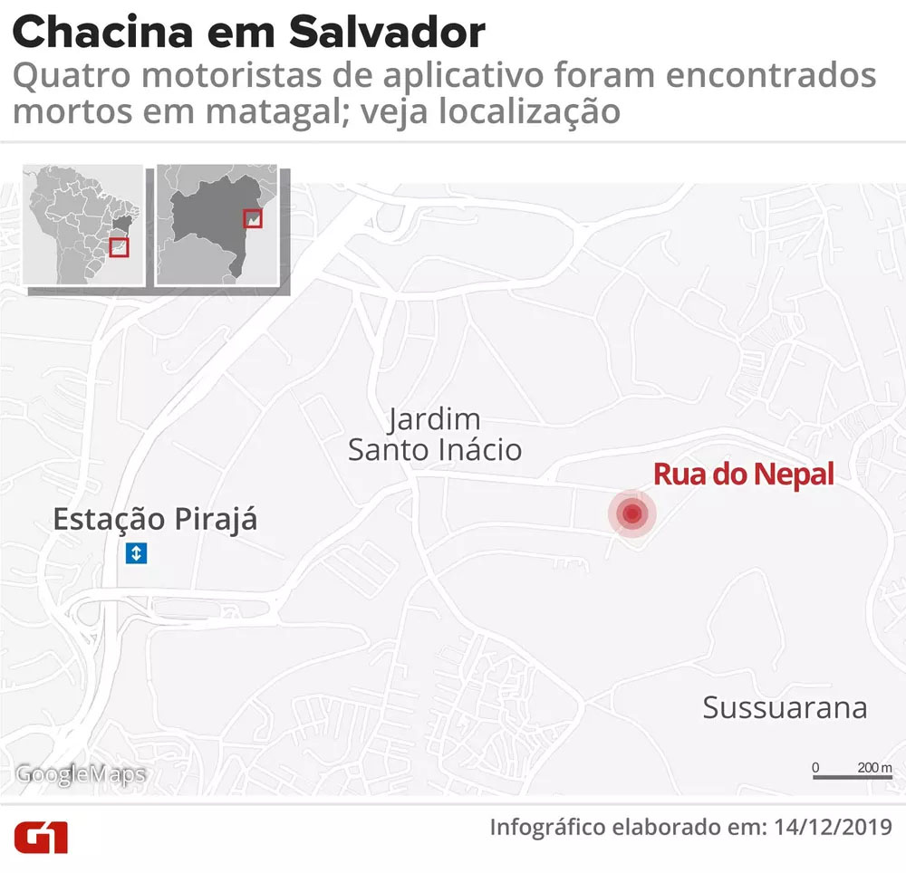 Corpos foram achados em um matagal no bairro de Jardim Santo Inácio, em Salvador — Foto: Arte/ G1