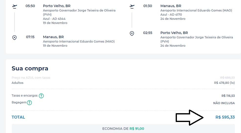 Passagens aéreas de ida e volta com taxas incluídas nos voos saindo de PORTO VELHO