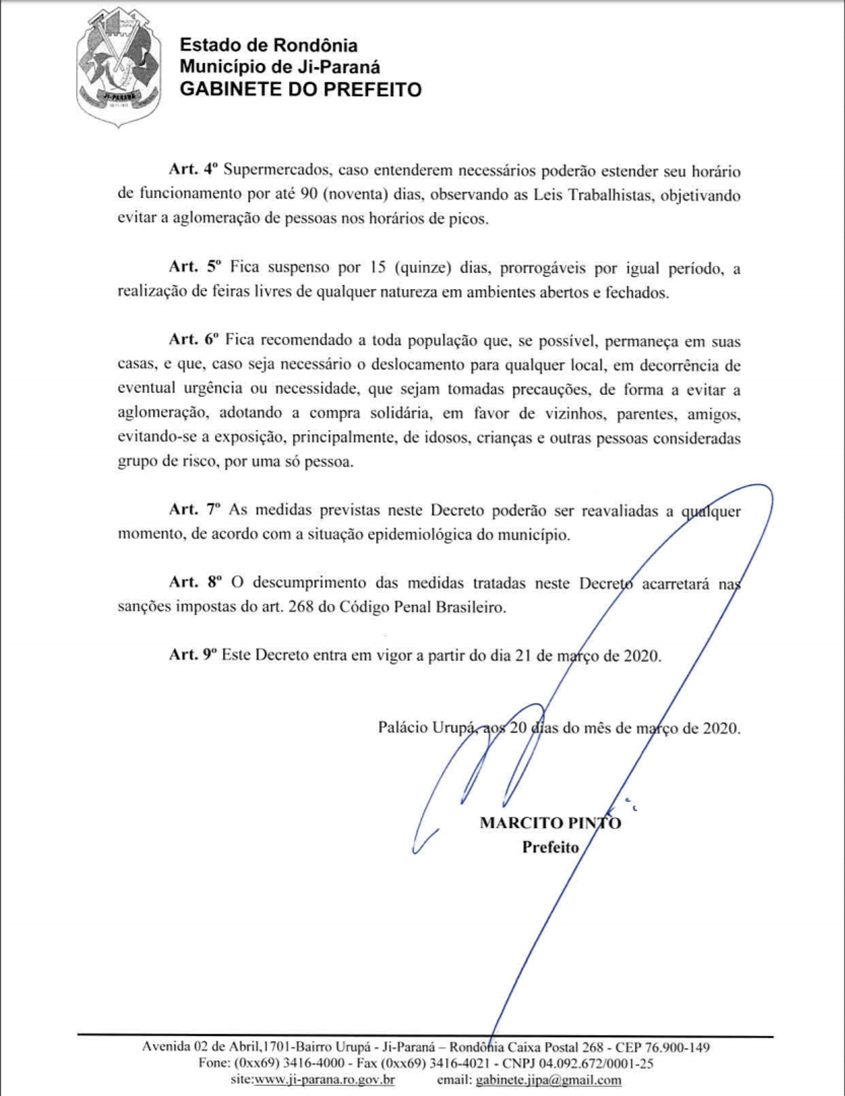A Associação Comercial e Industrial de Ji-Paraná- ACIJIP, vem por meio deste informar aos seus associados que estará fechada nos próximos dias, em atendimento ao decreto Municipal n° 12560/GAB/PM/JP/2020 , que determinou o fechamento do comércio.