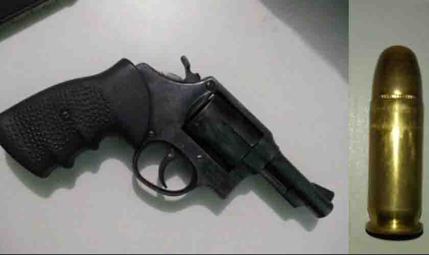 Durante buscas ao veículo foram localizadas debaixo do banco do motorista uma arma de fogo (revólver) de calibre .38 e cinco unidades de munições de mesmo calibre. O homem não possuía documentação que comprovasse o porte da arma.
