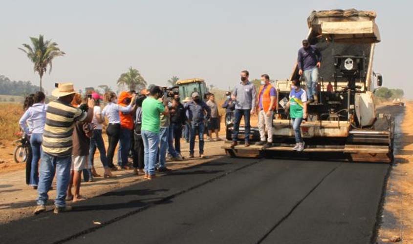 Governador Marcos Rocha vistoriando a pavimentação da RO-470