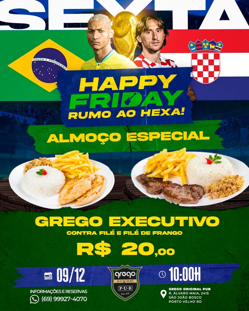 O premiado Pub porto-velhense, o Grego Original, esta em clima do 'Hexa', nesta sexta-feira, dia 9, a casa de rock vai abrir às 10h para as "Gregas" e os "Gregos" assistirem Brasil X Croácia.