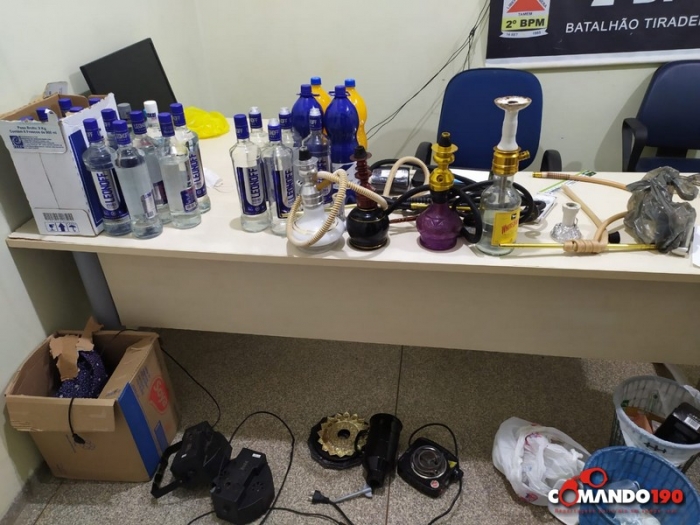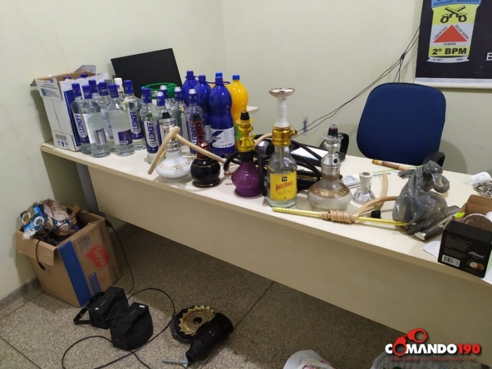 Ao chegar no local os policiais se depararam com dezenas de pessoas, muita bebida, além de diversos aparelhos de narguilé.