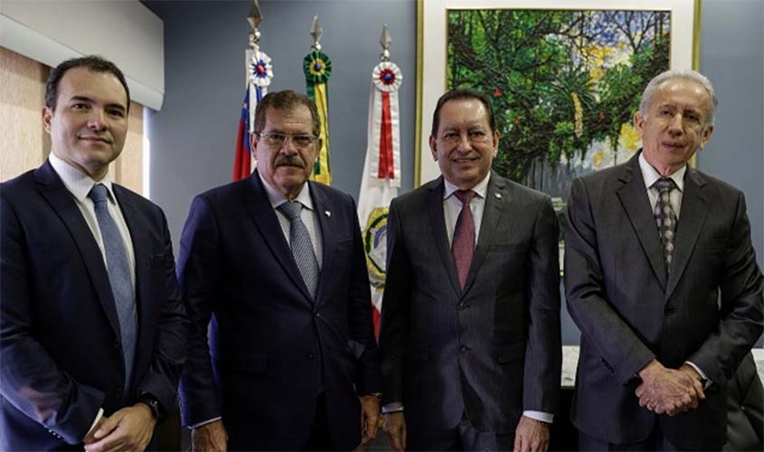 Juiz auxiliar da Corregedoria Nacional de Justiça Márcio Freitas, o corrgedor nacional, ministro Humberto Martins, o presidente do Tribunal de Justiça do Amazonas, desembargador Yedo Simões de Oliveira, e o desembargador do TJAM Ari Moutinho- Foto: Divulgação