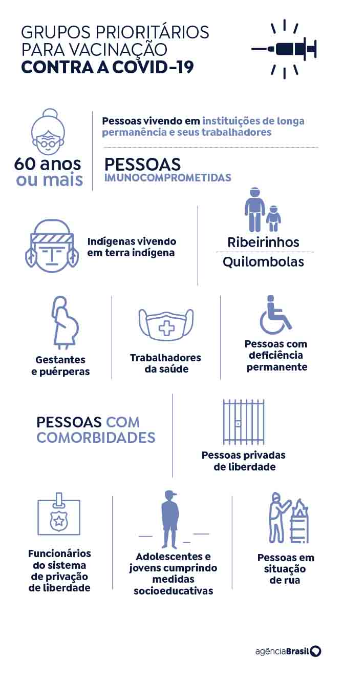 Desde janeiro de 2024, a vacina contra a covid-19 integra o Programa Nacional de Imunizações (PNI). A recomendação do Ministério da Saúde é que estados e municípios priorizem crianças de 6 meses a menores de 5 anos e grupos com maior risco de desenvolver formas graves da doença, como idosos, imunocomprometidos, gestantes e puérperas.