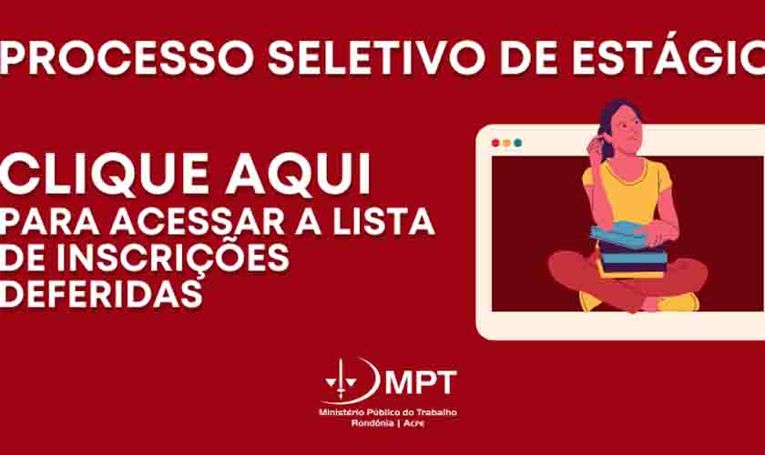 Confira as Listas de inscrições Deferidas e Indeferidas para provas de seleção para estágio no Ministério Público do Trabalho