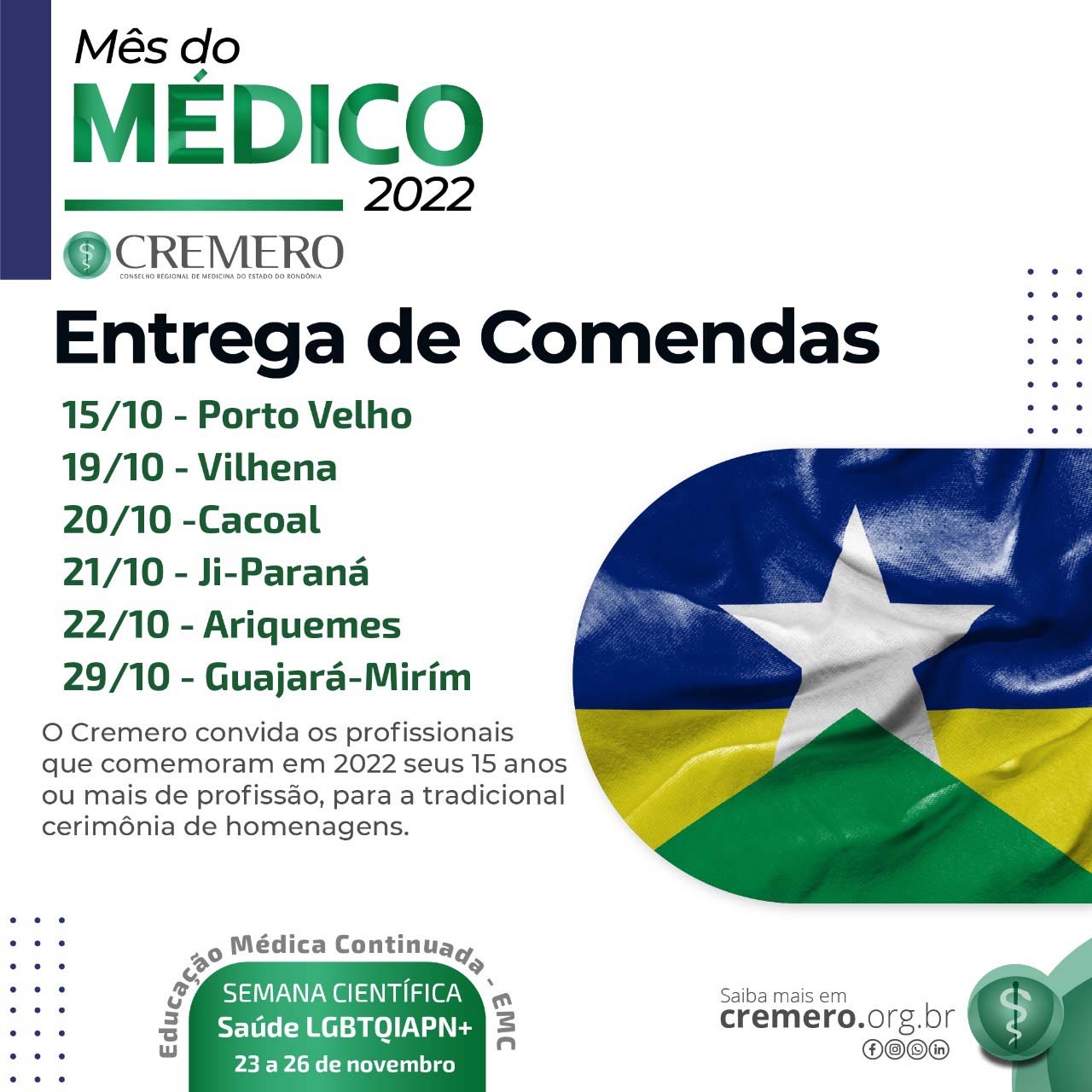 Ao todo, são dez tipos de comendas que mudam de acordo com o tempo de graduação, conforme descrito abaixo. “Através do nosso banco de dados realizamos a busca ativa dos profissionais, porém solicitamos para que o médico que se enquadre nessas fases também entre em contato para confirmar sua presença e recebimento. Fazemos questão de receber todos neste dia de grande alegria”, destacou a presidente do Cremero, Ellen Santiago.