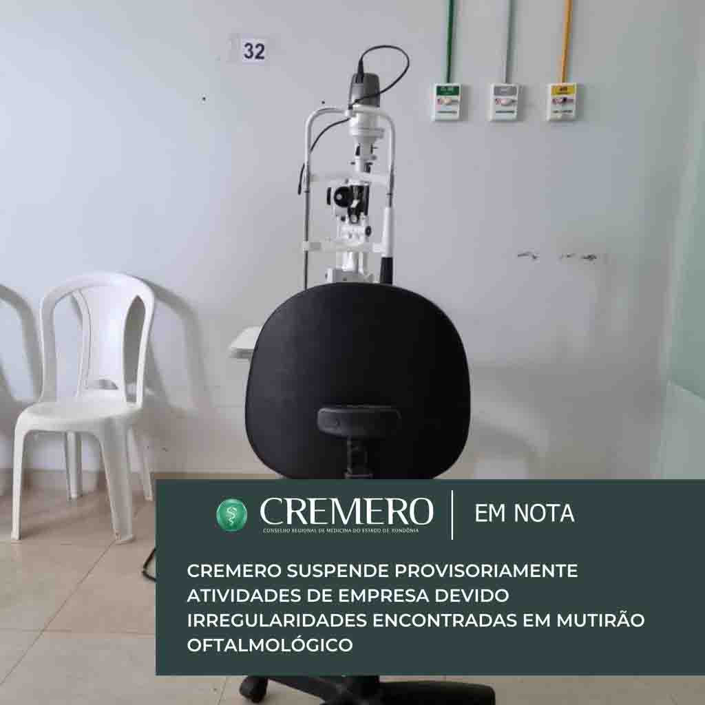 Na fiscalização de rotina realizada em 24/03/2022, na cidade de Vilhena, foram constatadas sérias irregularidades no mutirão de cirurgias oftalmológicas organizado pela empresa, que não oferecia condições de segurança à execução do ato médico, conforme Resoluções do CFM e deste Conselho.