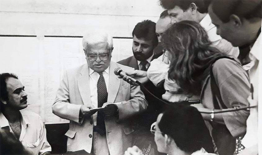 FOTO DO DIA: Eleição na época do voto no papel. Àquela época a leitura do primeiro voto apurado criava uma expectativa muito grande, e cabia ao juiz, no caso o dr. Cesar Soares de Montenegro, fazer a leitura do primeiro voto, em voz alta, cercado pela imprensa, candidatos e outros, tudo transmitido pela Rádio Caiari, onde o locutor fazia enormes citações antes da abertura da urna e leitura do voto.
