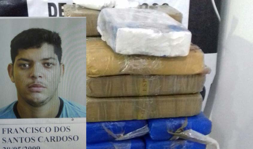 Porto Velho, Rondônia - Uma ação rápida de policiais civis do Departamento de Narcóticos (DENARC) resultou na prisão de um suposto traficante identificado como Francisco S. C. (29), vulgo "Edinho". Com com ele os agentes apreenderam quase 20 quilos de cocaína avaliados em torno de 250 mil reais.
