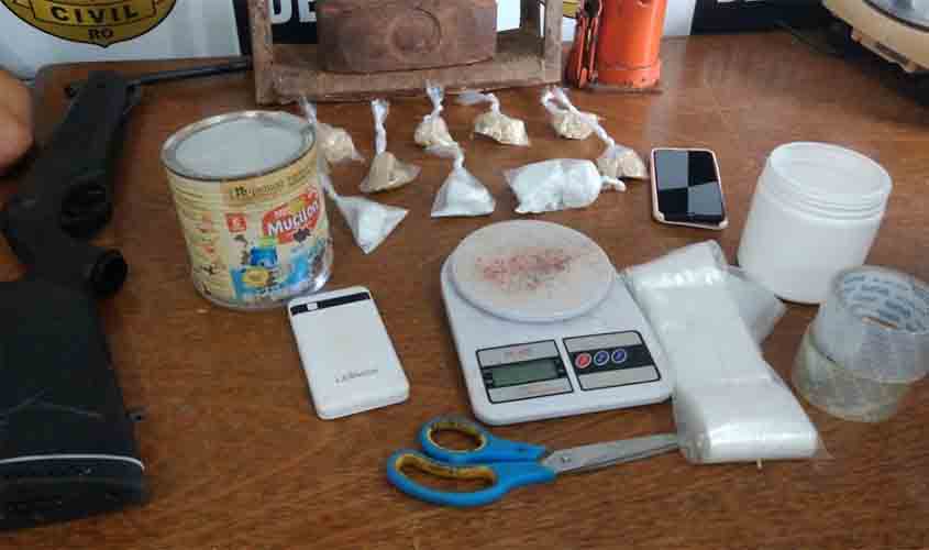 Eles conseguiram um mandado de busca e apreensão e prenderam o suspeito com porções cocaína, totalizando quase meio quilo, e uma espingarda de pressão adaptada para munição calibre 22.
