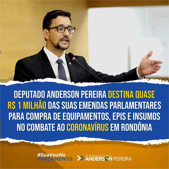O presidente da Comissão de Segurança Pública da Assembleia Legislativa de Rondônia, o deputado estadual Anderson Pereira (Pros), destinou quase R$ 1 milhão, emenda parlamentar individual as ações de combate, prevenção, propagação e tratamento do Covid19-Coronavírus, que vai garantir a compra de equipamentos, respiradores, insumos.