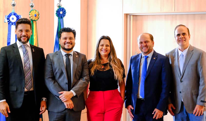 O gabinete da presidência da Assembleia Legislativa foi espaço democrático de debate sobre a educação e suas prioridades, na manhã desta terça-feira, 21, quando a secretária de Estado da Educação, professora Ana Lúcia Pacini, foi recebida pelo presidente da Casa de Leis, deputado Marcelo Cruz (Patriota) e pelos deputados Alan Queiroz (Podemos), Delegado Camargo (Republicanos) e Cirone Deiró (União Brasil).