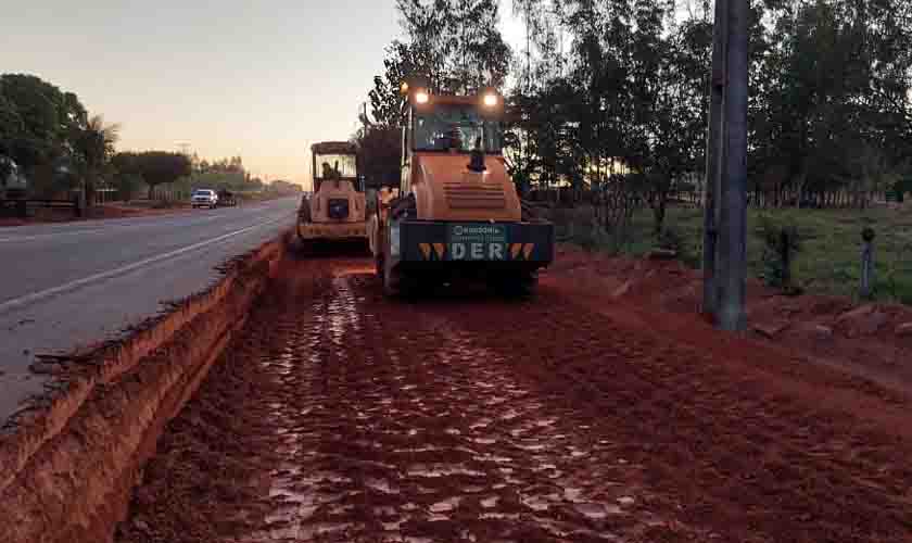 De acordo com Carlos Leandro, residente responsável pela obra, o alargamento da pista está sendo feito no trecho que liga um frigorífico à BR-429, em São Miguel do Guaporé. “Estamos com equipes trabalhando intensamente para alargarmos a pista, o que vai melhorar a trafegabilidade para usuários.