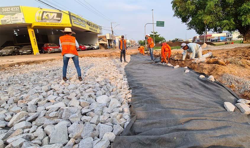 Trecho no perímetro urbano está recebendo uma atenção especial, com a implantação de um colchão drenante