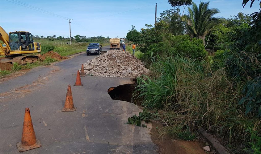 Aterro cedeu após uma forte chuva e a elevação do nível do rio na RO-480