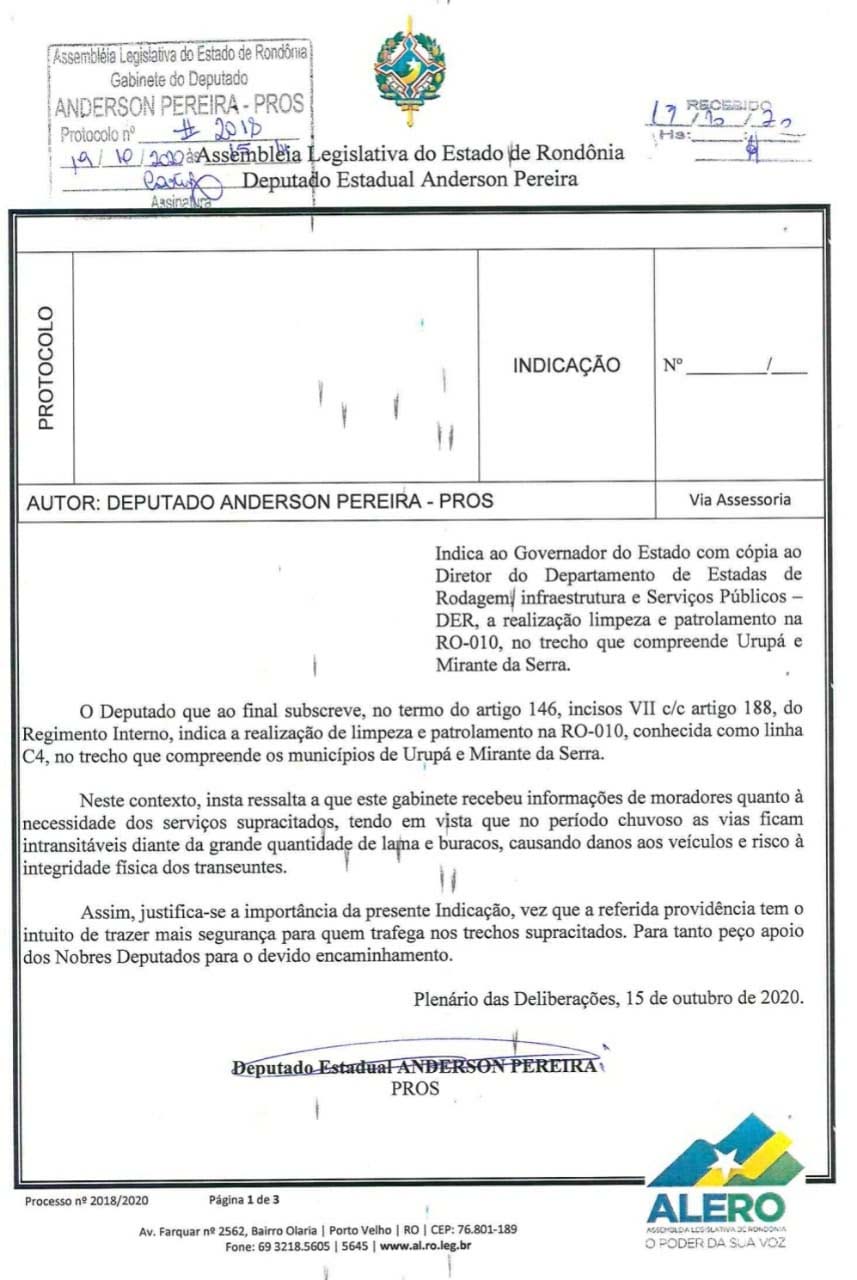A indicação do deputado Anderson Pereira, se deu atendendo o clamor social de moradores da região, que já não suportavam as péssimas condições da via
