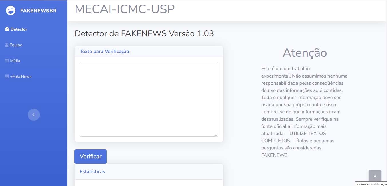 Foram sete meses de trabalho para “ensinar” o computador a interpretar textos. A fakenewsbr.com é uma plataforma de verificação que identifica informações falsas de forma automática. O coordenador do projeto, professor Francisco Louzada, do Centro de Matemática e Estatística Aplicada a Indústria (CeMEAI), explica que o sistema usa algoritmos de inteligência artificial para identificar padrões comuns em notícias mentirosas. “Identificamos palavras, expressões e estruturas comuns em notícias falsas. O texto mentiroso costuma apelar para a emoção do leitor, é opinativo e carrega um tom de urgência. Esses padrões, junto com algumas palavras que costumam sempre aparecer em textos enganosos, são os sinais que o computador localiza e classifica”, detalha.