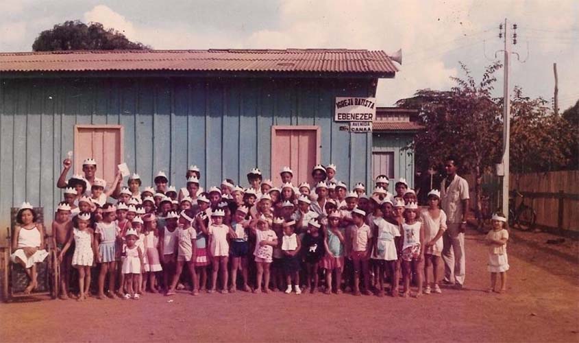 Crianças de Ariquemes em dia de festa no primeiro templo da Igreja Batista Ebenezer, há 41 anos