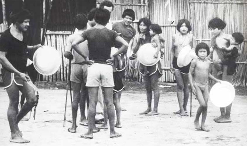 Uru-eu-wau-wau recebem ferramentas e utensílios de cozinha, na sede do Posto Alto Lídia (depois Comandante Ari Daltoé)