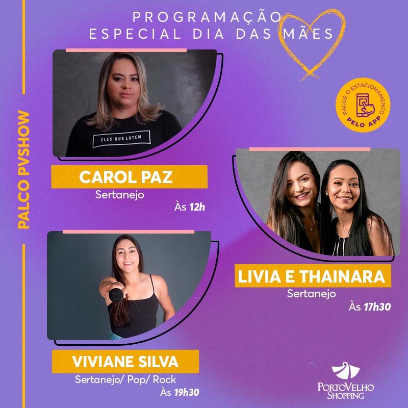 Além dos shows especiais, o Porto Velho Shopping estenderá seu horário de funcionamento na sexta-feira (12) e no sábado (13), das 10h às 23h. Essa é uma ótima oportunidade para quem deseja aproveitar o final de semana para fazer compras, desfrutar das opções de entretenimento e encontrar o presente ideal para as mães.