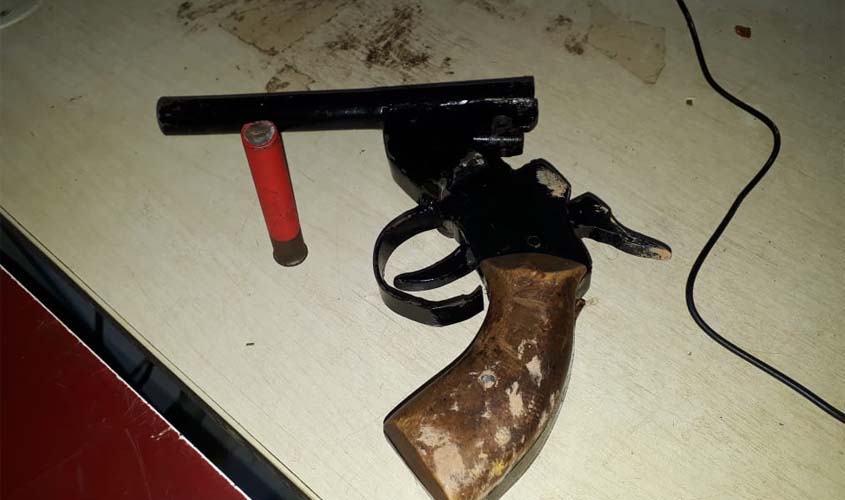 Durante a revista pessoal foi localizada na cintura de Adriana uma arma de fogo de fabricação caseira com uma munição calibre 36 intacta.