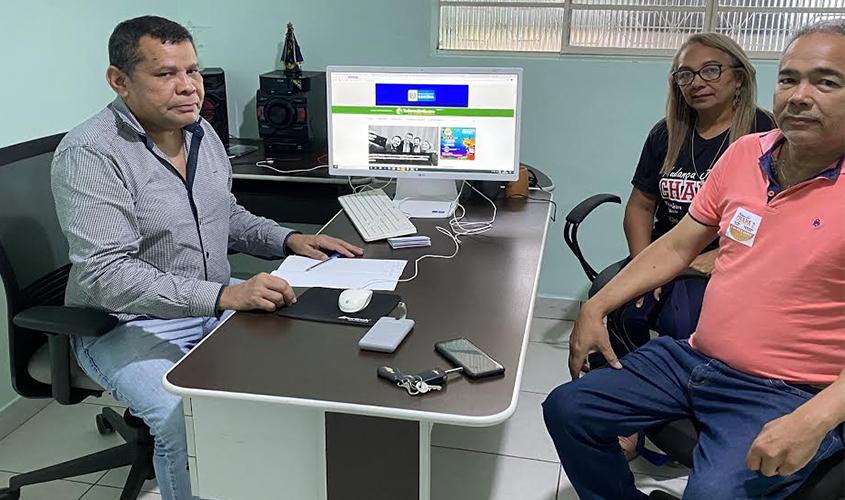 Paulo Vieira, candidato oposicionista, na redação do Tudorondonia, acompanhado por Ivonêse Silva, candidata a suplente da Secretaria de Saúde do Sindsef, durante entrevista ao jornalista Rubens Coutinho, editor do site